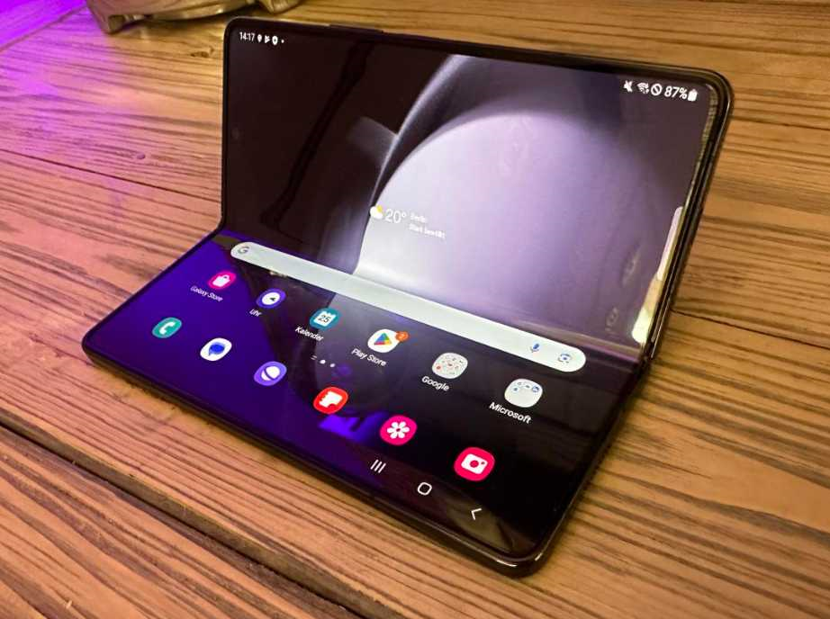 The Samsung Galaxy Z Fold5 stands on a table. What changes will the company unveil for the Galaxy Z Fold6? (Photo by Christoph Dernbach/picture alliance via Getty Images) (dpa/picture alliance via Getty I)